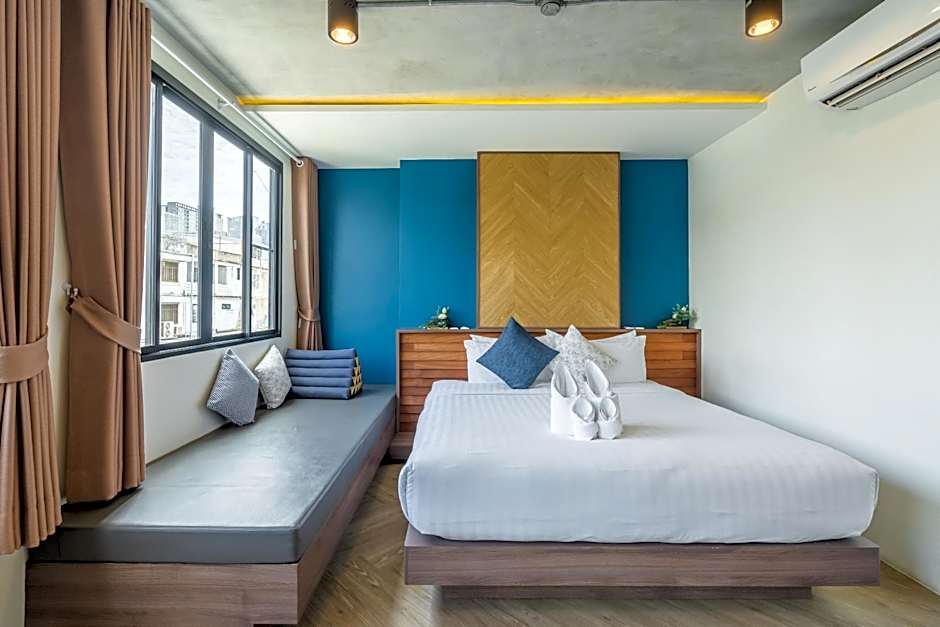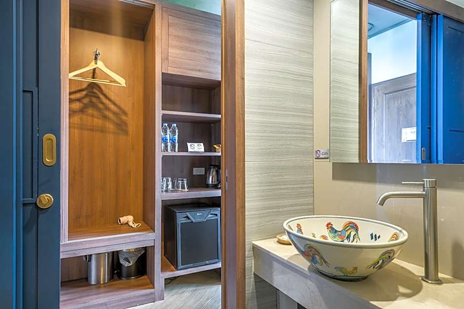 This spacious room is equipped with a cable TV and wooden furnishings.